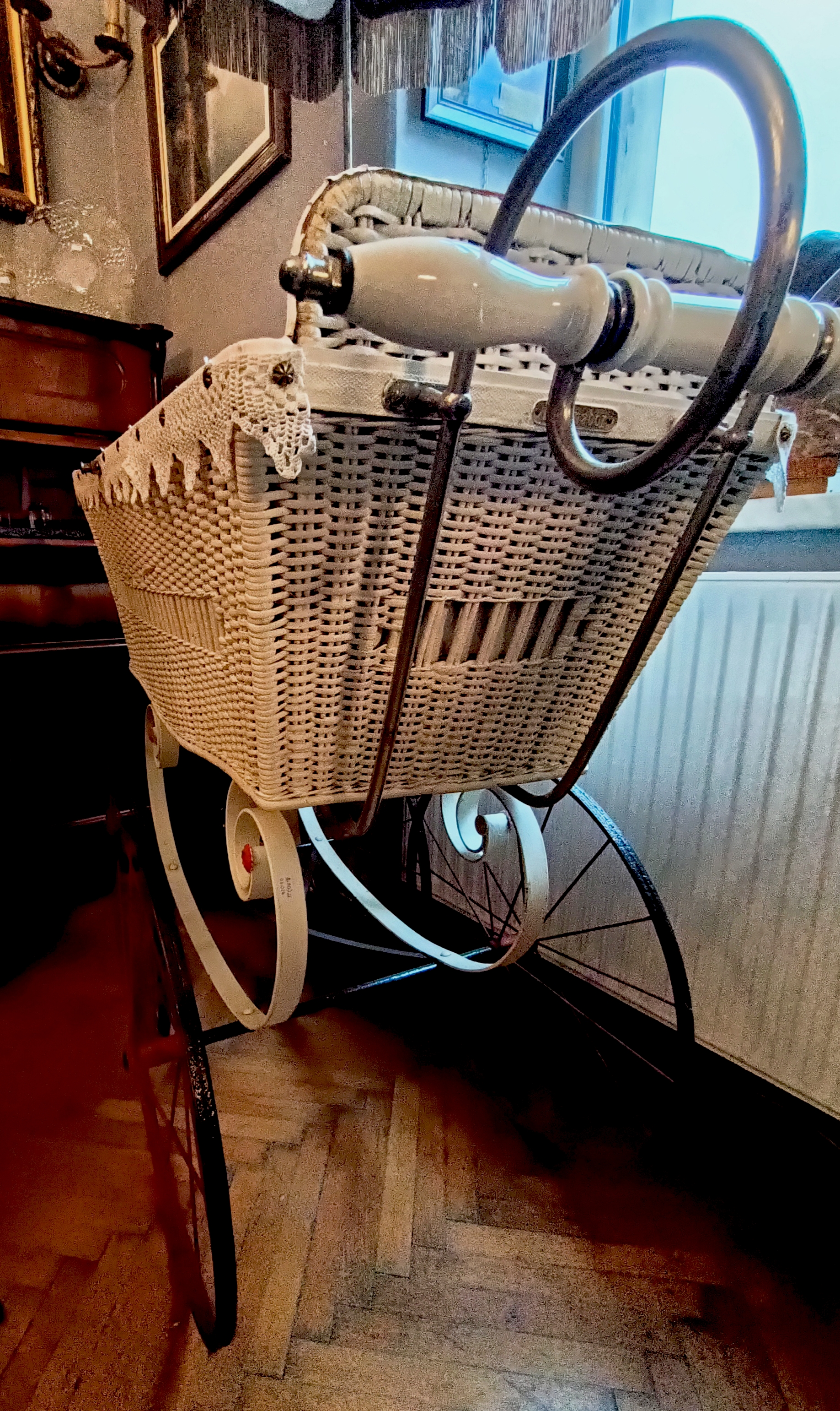 Wózek dziecięcy lata 1900-1915 wys. 85cm dł. 100cm gł. 43cm |