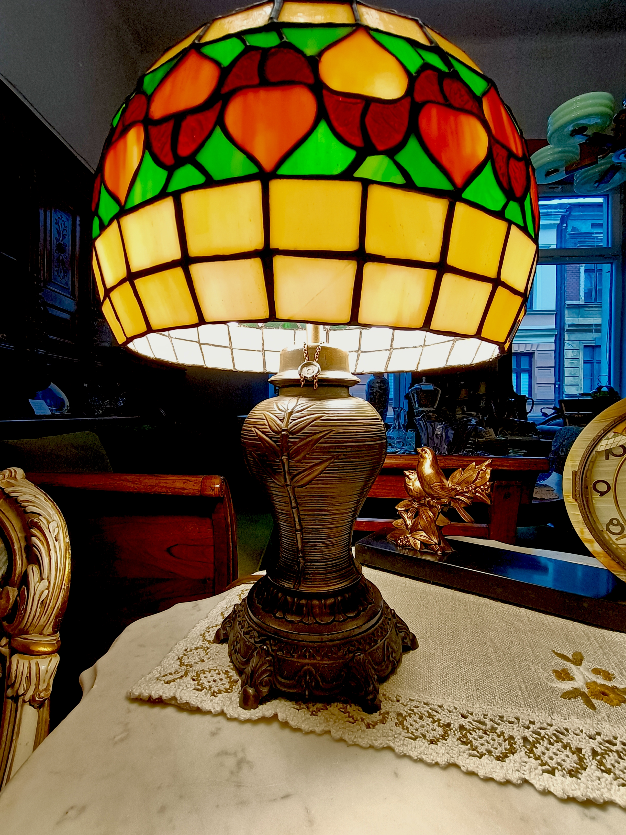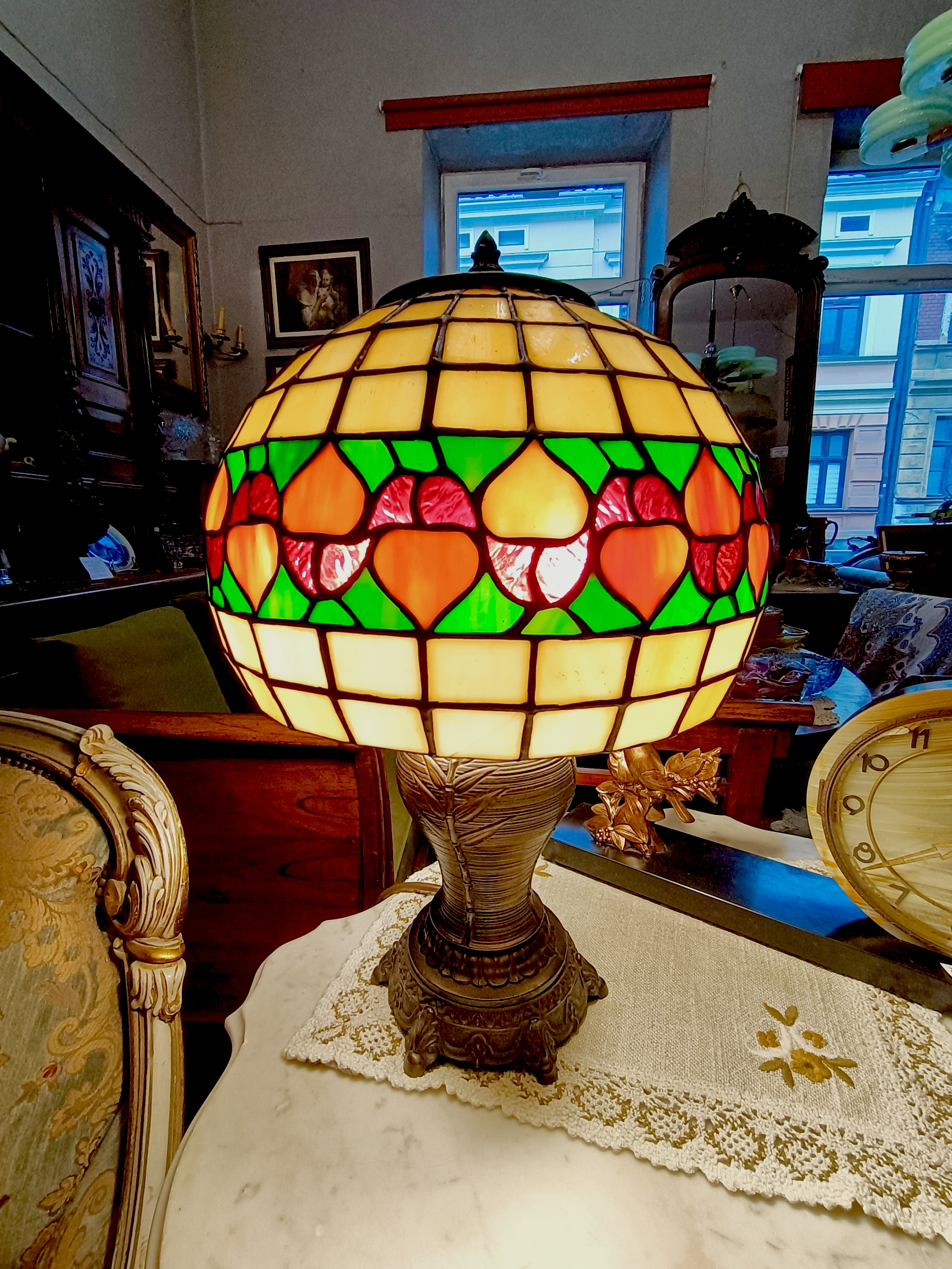 | Lampa, szkło witrażowe,sygnowana. 1970-1980 | ||
